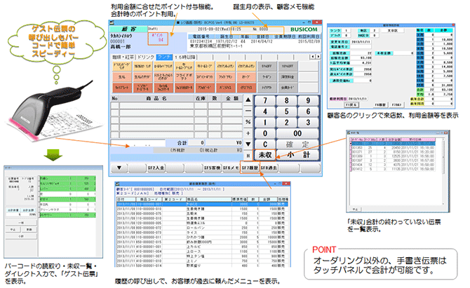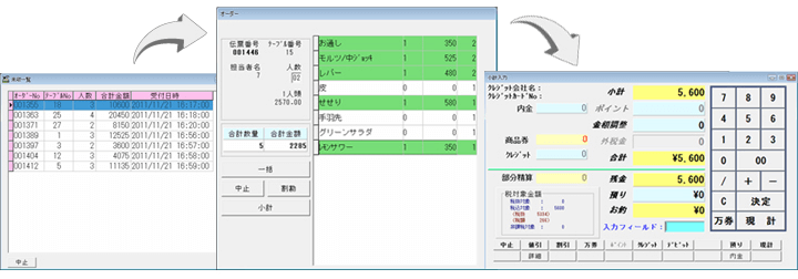 会計時にお渡しするコールシステム端末と同じ番号の顧客コードをレジで呼び出し、受注・会計をおこないます。
