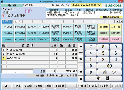 顧客を呼び出した状態で、レジ画面から顧客情報詳細を呼びだし、お客さまの過去12ヶ月販売金額や平均単価等の動向を表示することができるので、一定期間来店していないお客様へアプローチする等、優良顧客を逃しません。