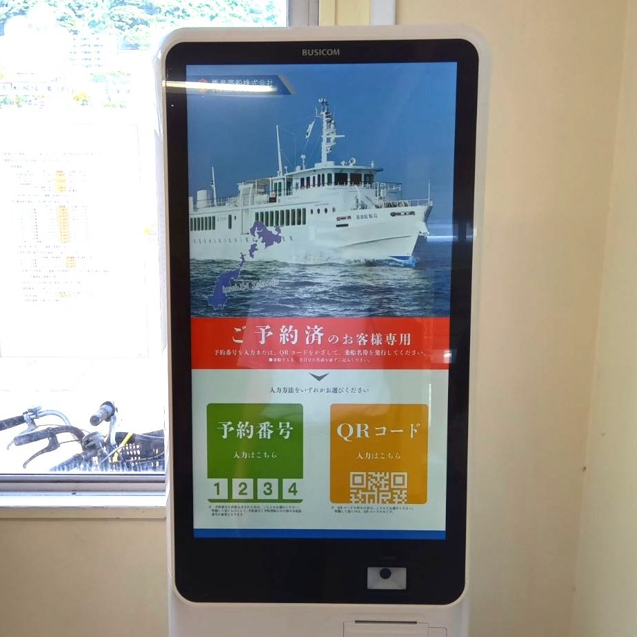 甑島商船株式会社様では、「BigTouch」を発券システムと連携させ、予約済みのお客様専用の発券端末としてご活用いただいています。