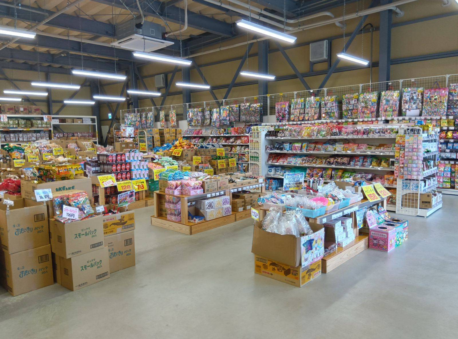 店内には全国のお菓子から懐かしの駄菓子まで幅広く揃い、菓子卸問屋ならではの豊富な品揃えと全品卸価格が魅力です。業者の方も一般のお客様も、毎日お得にお買い物を楽しめます。