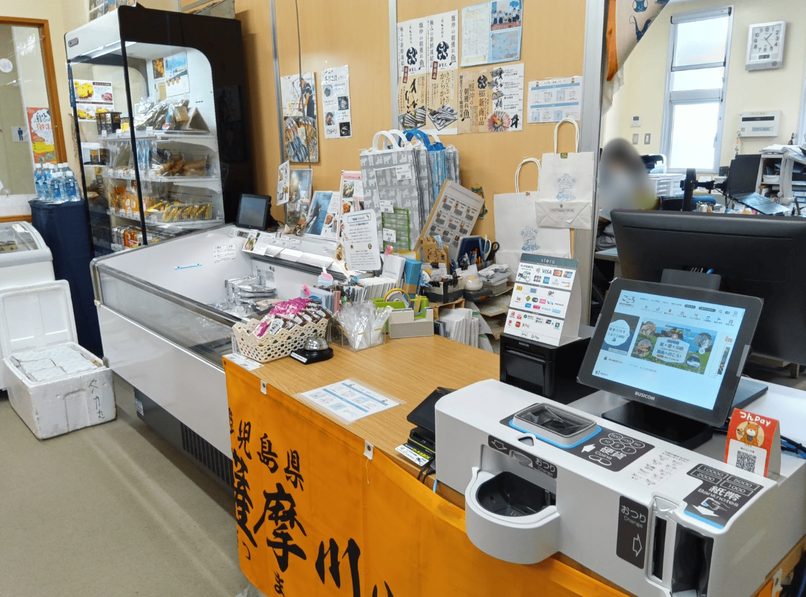 薩摩川内市観光物産協会様では、鹿児島県の離島・甑島(こしきしま)の港ターミナル内(里港/長浜港)で営業するお土産店2店舗に、当社のPOSレジを導入いただきました。