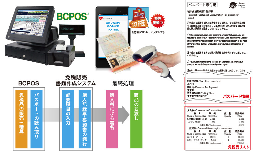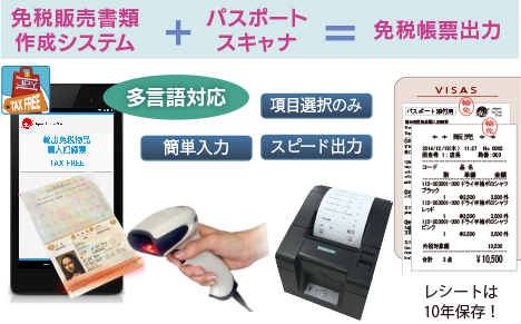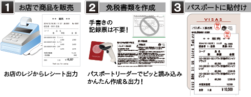 今使っているお店のPOSシステムそのままで、免税書類の作成がスピーディーにできます。