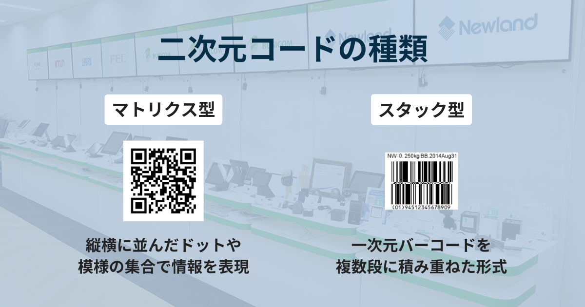 二次元コードには複数の種類があり、それぞれ情報の配置方法や読み取り性能、適した利用シーンが異なります。大きく分けると、ドットや模様を平面に配置するマトリクス型と、一次元バーコードを層状に重ねるスタック型に分類されます。