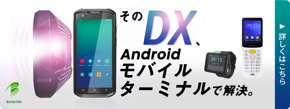 WindowsCE端末からAndroid端末へのリプレイス需要が高まる中、ビジコムはスマートフォン型・ハンディ型・腕時計型など用途に応じて選べるモバイルターミナルを提供。検証済みの業務用アプリケーションを柔軟に組み合わせてお使いいただけます。