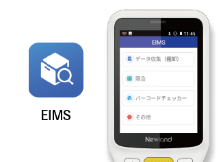本機には、棚卸・ピッキング用アプリ「EIMS」を標準搭載しています。バーコードを読み取ってCSVやTXTデータとして保存する「データ収集」や、出荷伝票と商品を突き合わせる「照合確認」など、現場で必要な機能をすぐに利用可能。簡易的な運用であれば、高額なシステム開発費をかけずに、届いたその日からDX化をスタートできます。