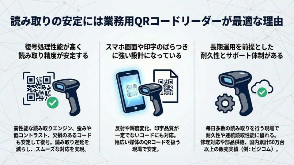 読み取りの安定には業務用QRコードリーダーが最適な理由