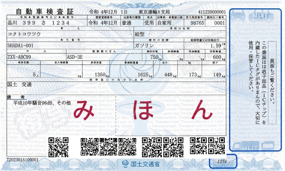 | 登録番号 | 品川500あ1234 |