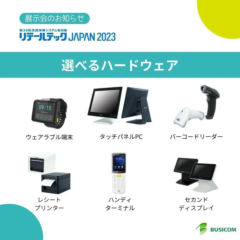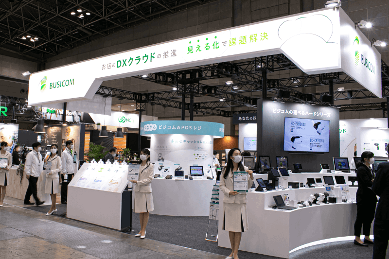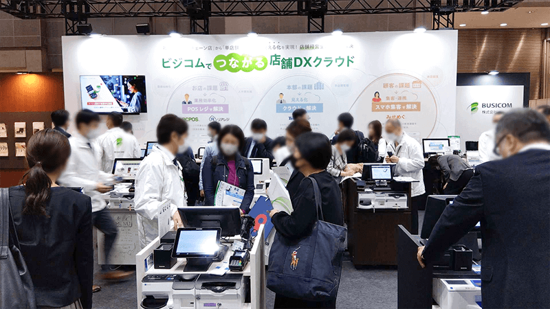 会場では、お店に必要な機能やシステム・ハードウェアを実際にお試しできるほか、実機デモや弊社スタッフによるご相談もお気軽にお受付いたします。まるっと解決できるビジコムの繋がる店舗ソリューションを、ビジコムブースにて是非お試しください!