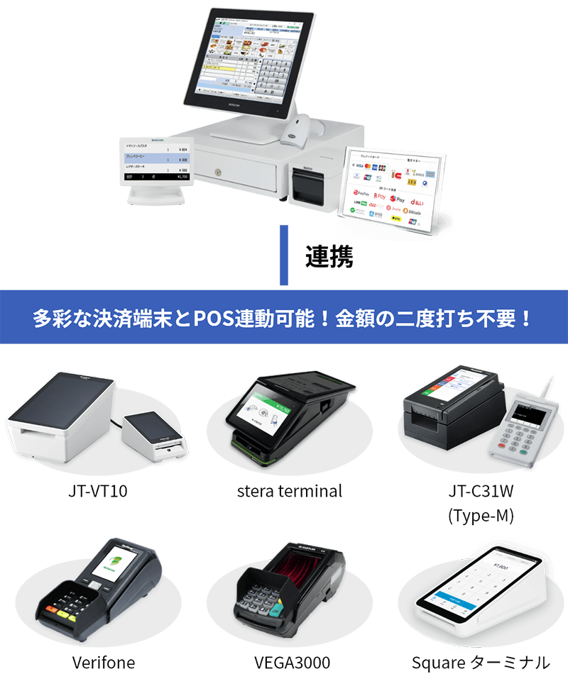 2度打ち不要で、様々な決済端末と連動可能なビジコムのPOSレジと、