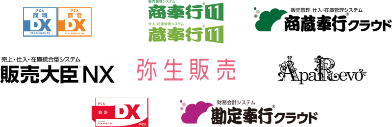 上記8つがPOSレジとつながるソリューションと、業務向けハードウェアを多数展示いたします。