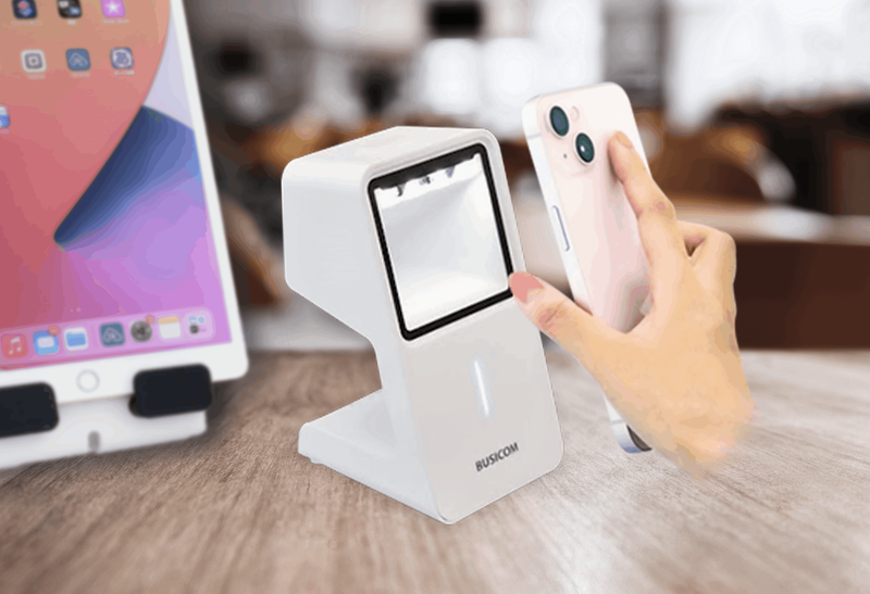 ワイヤレス接続(Bluetooth・USBドングル)で動作する定置式2Dバーコードリーダーです。安定したワイヤレス通信ができるため、POSレジ、Windows PC、iPad、iPhone、スマートフォン、Androidタブレット等、様々なデバイスと接続が可能です。
