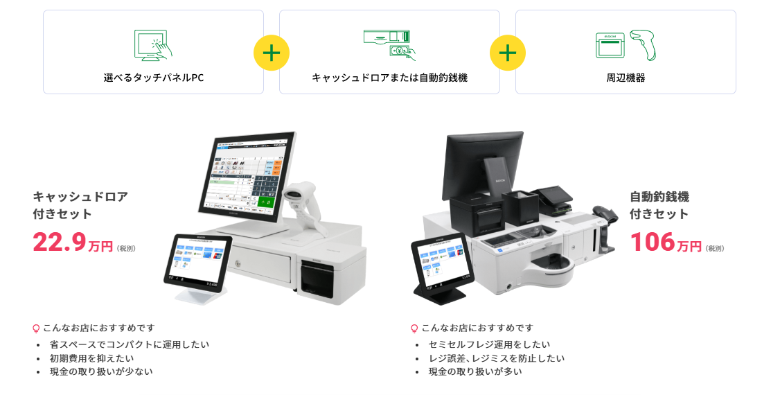 ビジコムでは、多彩なキャッシュレス決済端末と連動するPOSレジを低価格でご購入いただけます。