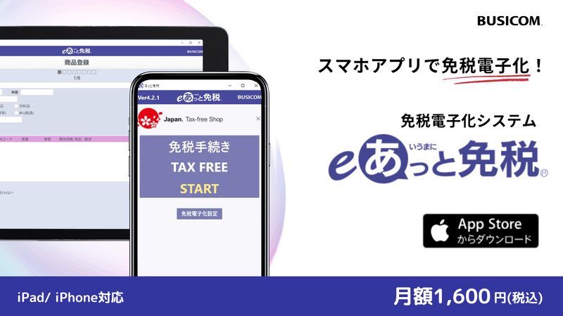 iPad/ iPhoneで始められる免税電子化システム「eあっと免税」は月額1,600円から!