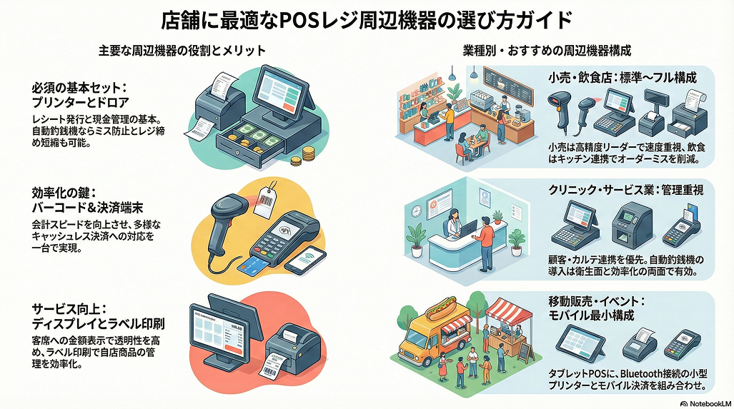 業種や運用に合わせたPOSレジ周辺機器構成の考え方