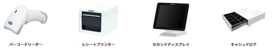 レシートプリンターやキャッシュドロアなど必須周辺機器