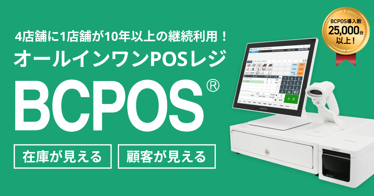 株式会社ビジコムのオールインワンPOSレジ「BCPOS」は、WindowsPCで動作するシステムを採用しているため、ハードウェアが老朽化した場合でも「中身」を引き継ぎながら使い続けられる点が大きな特長です。パソコン本体(ハードウェア)が変わっても操作画面や運用方法は変わらないため、スタッフへの再教育がほとんど不要というメリットもあります。