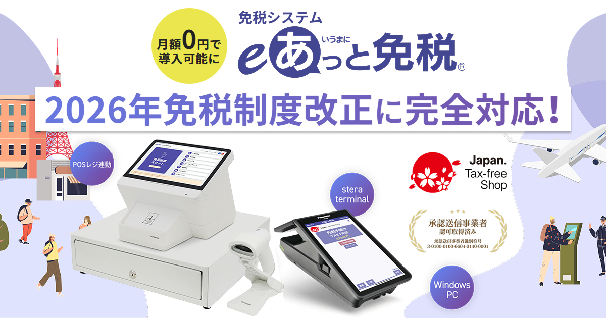また、株式会社ビジコムは国税庁公認の「承認送信事業者」であり、免税販売に必要な購入記録情報の送信を含む運用にも対応しています。あわせて免税システム「eあっと免税」は、2026年11月に施行予定の新免税制度(リファンド方式)にも対応しているため、現行制度向けに導入した場合でも、制度開始時にシステムを入れ替える必要がなく、将来の制度改正を見据えた運用が可能です。
