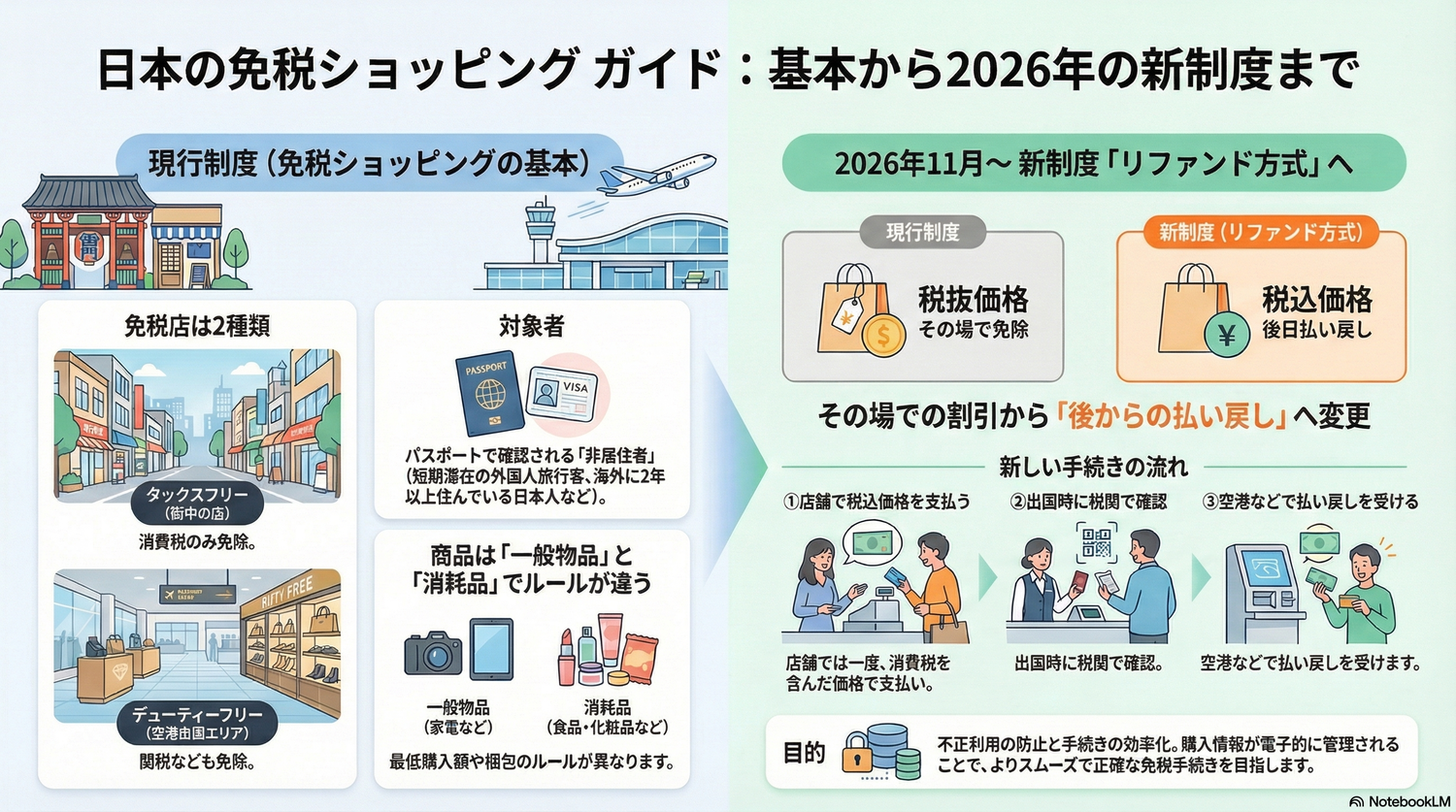 さらに、2026年11月からは免税制度が大きく変わり、リファンド方式が導入されます。制度変更に伴い、利用者だけでなく免税販売を行う店舗側にも新たな対応が求められるため、今のうちに免税店の基本を正しく理解しておくことが重要です。