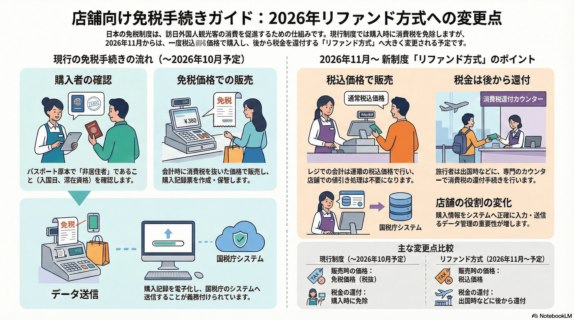 2026年11月からは、免税制度がリファンド方式へと変更される予定です。この変更により、店舗での免税手続きの流れも大きく変わることになります。