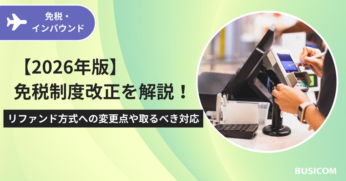 なお、2026年の制度改正に向けて免税対応をスムーズに進めたい場合は、承認送信事業者である株式会社ビジコムの免税電子化システム「eあっと免税」がおすすめです。現行制度の段階から導入しておくことで、リファンド方式への切り替え時にも店舗側で複雑な再設定や追加作業を行う必要がなく、そのまま新制度に移行できます。
