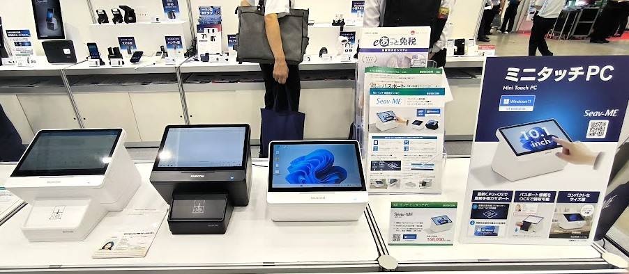 横幅わずか24cmのコンパクトな筐体に、最新の企業向けOS「Windows 11 IoT Enterprise」と高性能Intel N150プロセッサーを搭載。オプションのパスポートリーダーユニットと組み合わせて展示いたしました。受注生産にてAndroid OS対応も可能です。