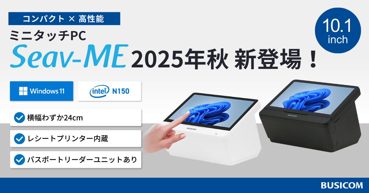 2025.12.04 POSレジソリューション みせめぐユーザー登録数50万人突破のお知らせ 2025.11.19 POSレジソリューション 店舗の人手不足解消を支援するフルセルフレジをビジコムが提供開始 2025.10.29 POSレジソリューション Windows11搭載、コンパクト×高機能なPOSレジセットがビジコムから新登場・予約開始! 2025.08.28 業務用ハードウェア Windows11・8GBメモリ搭載、15インチの業務用タッチPC「Seav-15cⅡ」新発売 2025.08.21 業務用ハードウェア コンパクト×高性能 10.1インチのミニタッチPC『Seav-ME』、2025冬に登場 2025.08.14 業務用ハードウェア 低コストで手軽に導入できるリングスキャナ『NLS-BS20』新発売!超軽量&ハンズフリー、人差し指に装着して現場作業を効率化 2025.08.05 業務用ハードウェア 2次元コード・スマホ画面対応の定置式バーコードリーダーに、USBモデルが登場!安定通信で店舗・現場の業務を効率化する『BC-NL4200U』発売開始 2025.07.29 業務用ハードウェア タッチPCとレシートプリンターを一体化!省スペースに収納できるビジコムの専用PCスタンド『プリンターinスタンド』新登場 2025.07.16 POSレジソリューション 【決算セール】ビジコムの自動釣銭機付きPOSレジが最大16万円OFF! 2025.07.15 業務用ハードウェア Androidモバイルターミナル「NLS-MT93」が株式会社スコープの賞味期限管理アプリ「Expiry Management」と連携開始 2025.03.31 POSレジソリューション ビジコムのPOSレジは「IT導入補助金2025」に対応します。 2025.02.13 POSレジソリューション 直感的な操作性と最新周辺機器に対応した『BCPOS Ver10.0』をリリース 2025.02.06 POSレジソリューション ビジコムから5G対応&持ち運び可能なスマホ型POSレジが登場! 2025.01.22 業務用ハードウェア キオスク端末『Seav-MK』とグローリー自動釣銭機の連携を開始!会計シーンでの利用拡大を提案 2025.01.15 POSレジソリューション 神奈川銀行とビジコムがビジネスマッチング契約を締結 2024.11.07 業務用ハードウェア 高い処理速度で業務課題を解決するWindows OSのキオスク端末『MAZIC K』が販売開始!省スペースな卓上型で、店舗や宿泊・公共施設など様々なシーンで活躍 2024.10.09 業務用ハードウェア 屋外でも使用可能な4G対応!手首に装着してハンズフリーで作業でき、物流・流通のDXに貢献する業務用ウェアラブル端末「NLS-WD1」に新モデルが登場 2024.09.30 POSレジソリューション 2024年10月1日スタート!調剤薬局等における制度改正に対応 NSIPS連携のPOSレジ「BCPOS Ver.9.5」が登場! 2024.09.10 業務用ハードウェア 従来機種の約6倍(当社比)の処理速度向上を実現!高性能な業務用タッチPC「Seav-15c」が新登場 2024.09.03 POSレジソリューション 【ビジコムのPOSレジ】高パフォーマンスなタッチPCを採用し新登場!POSレジセット「Seav-15c セット」販売開始22.9万円~ 2024.08.27 業務用ハードウェア ビジコムのAndroid™ モバイルターミナルにNewland社のハイスペックモデル「NLS-MT95」が新登場 2024.07.24 業務用ハードウェア Androidモバイルターミナル向けアプリマーケット公開 2024.06.25 業務用ハードウェア 1台でマルチタスクの「よくばりPC」でDXを実現 2024.04.10 POSレジソリューション ALSOK・AGSとの連携で自治体向け税公金収納の効率化 2024.04.09 POSレジソリューション 飲食店様必見!<数量限定>タッチパネル券売機を30万円で発売 2024.04.04 業務用ハードウェア 「そのDX Android モバイルターミナルで解決。」タクシーCM放映開始(4/8~) 2024.03.08 POSレジソリューション 業務用ハードウェア ビジコムのつながるカオスマップ公開 2024.03.07 業務用ハードウェア iMin製品取扱開始 2024.02.21 POSレジソリューション 業務用ハードウェア 「リテールテックJAPAN 2024」に出展します 2024.01.30 業務用ハードウェア Android™モバイルターミナル「NLS-MT93」「NLS-MT37シリーズ」発売 2024.01.29 POSレジソリューション 店舗DXを身近に!クラウドで売上管理が手軽にできるTenpoVisor Lite 2023.12.21 業務用ハードウェア ブラザーとコラボ!ビジコムオリジナル商品のラベルプリンター発売 2023.12.01 POSレジソリューション 群馬銀行とビジコムがビジネスマッチング契約を締結 2023.11.22 POSレジソリューション 「券売機・セルフレジ・キッチンプリンター」の3点セットが数量限定129万円! 2023.11.13 POSレジソリューション 新札対応セミセルフレジセット110万円キャンペーン!グローリー自動釣銭機「N300シリーズ」 2023.11.02 POSレジソリューション キャッシュレス決済端末無料キャンペーン!お得なビジコムのPOSレジセット 2023.07.26 POSレジソリューション 店舗の業務効率化推進に向けて、ビジコムと東日本銀行が連携強化を発表 2023.06.07 POSレジソリューション LINEミニアプリ「みせめぐMini」の提供開始 2023.05.30 POSレジソリューション BCPOSのNON-PLU機能を拡張し、はかり出力の多種類のラベルに対応 2023.05.10 POSレジソリューション 歯科業界を盛り上げる「MID-G」の賛助会員として入会 2023.04.20 POSレジソリューション 「リアレジ for JT-VT10」の提供開始 2023.03.23 POSレジソリューション POSレジ「BCPOS」最新バージョンで「Visit Japan Web」免税二次元コードに対