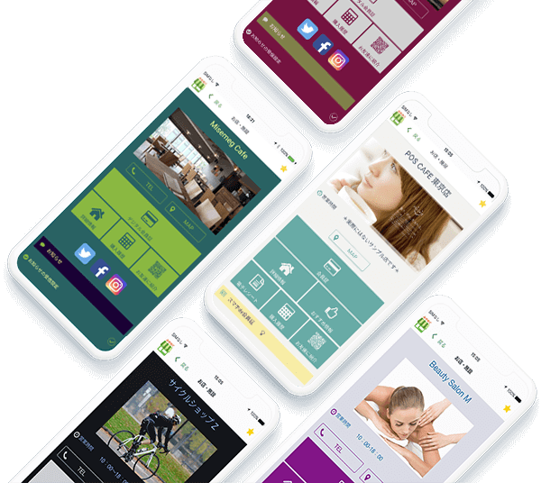 お店紹介ページは、背景・アイコン・文字・帯をお店のイメージに合わせてお好みのカラーに変更できます。画像も複数掲載できるので、お店のイメージも伝わりやすく、オリジナルアプリのようにご利用いただけます。