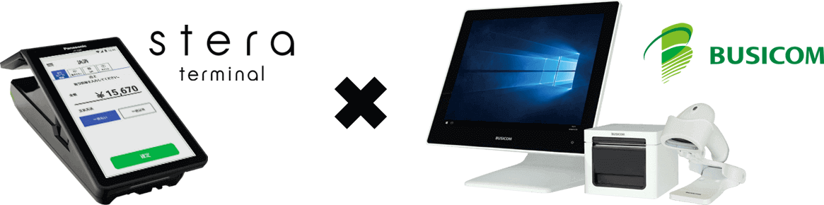 stera terminalはビジコムのPOSレジと連動します。POSレジと連動することでPOSレジの販売金額をstera terminalに受け渡すことができます。これまで金額情報の二度打ちで煩雑だったレジの会計業務がより早く、正確に、効率よく行うことができます。stera terminalをこれから導入する店舗も、すでに導入済みの店舗もビジコムのPOSレジと連動させることで便利にご利用いただけます。