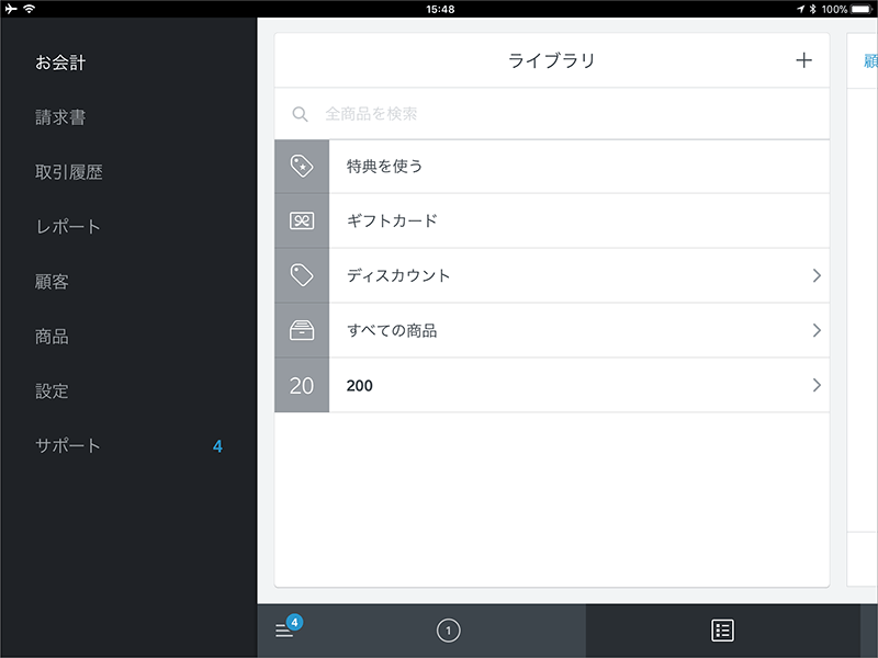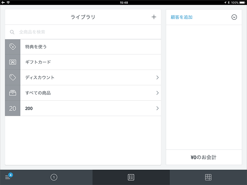 [1] クレジットは、Squareの画面から返金処理を行います。ホーム画面のSquareアイコンをタップしてSquareアプリを起動します。