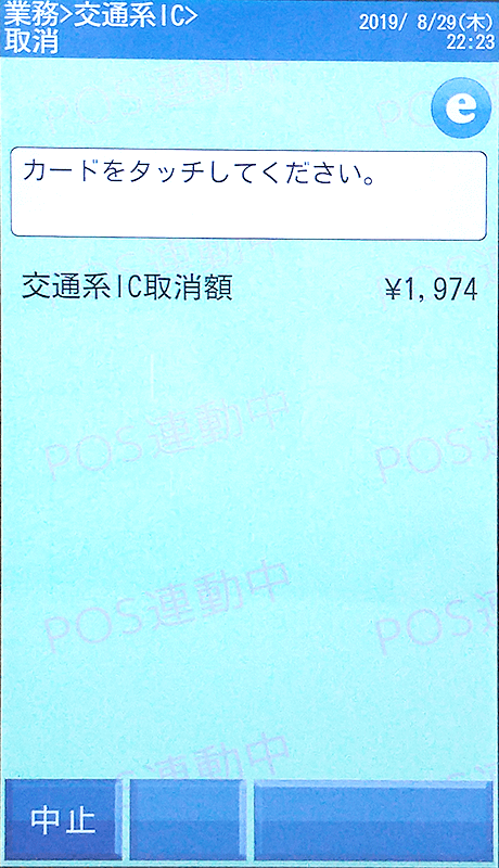 [7]「カードをタッチしてください。」と J-MUPS に表示されます。取引した電子マネーカードを NFCカードリーダーで読み取らせます。