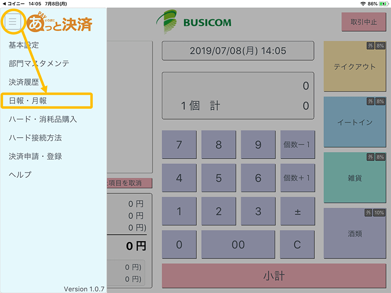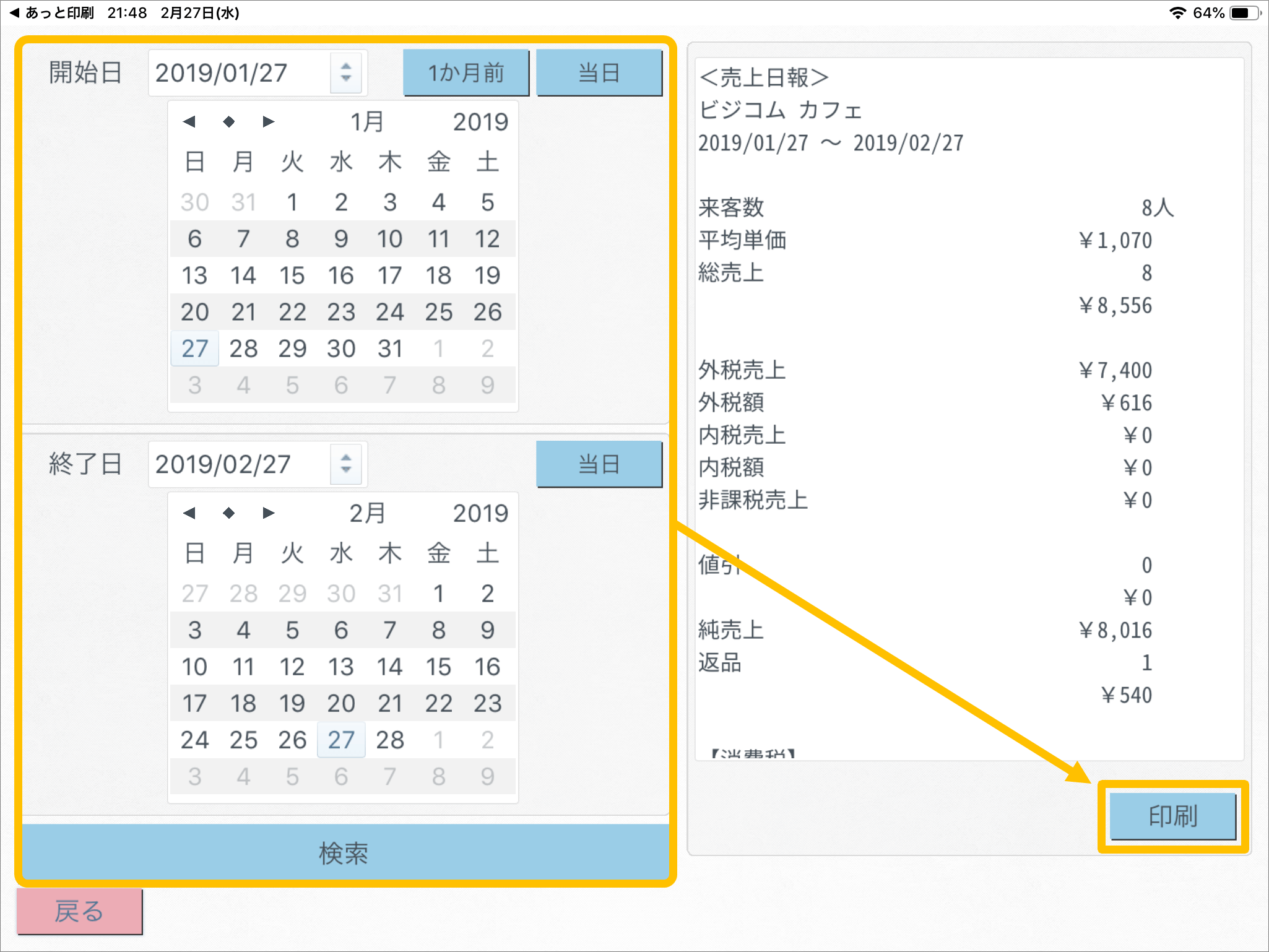 ここでは、レジ入力した結果の集計を日報・月報として照会・印刷する機能を案内します。