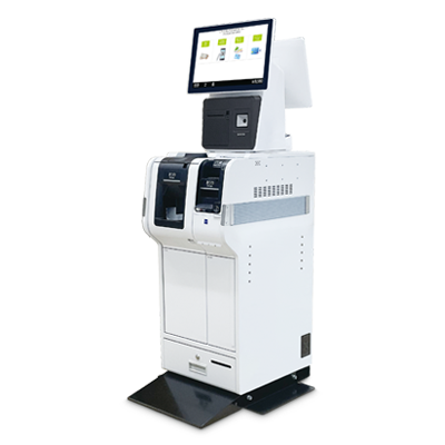 選択いただいた方法で、お客様に決済いただきます。現金の場合は自動釣銭機にお金を投入。クレジット決済の際は決済端末でクレジットカードやICカードを、スマホ決済の際は据え置きのリーダーでQRコードを読み取っていただきます。キャッシュレスと自動釣銭機を使うことでつり銭の受け渡しミスがなくなり、会計管理が正確になり職員の業務省力化につながります。