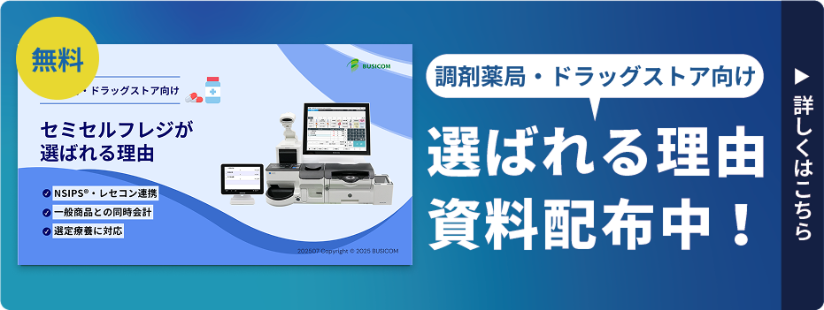 調剤業務だけでなく、OTC・物販強化や多店舗管理、ポイント機能にも対応。「小売機能」を求める薬局様に最適なPOSです。商品バーコード(JANコードなど)の読み取りや、営業を止めない棚卸など、小売に強いビジコムならではの運用を実現します。