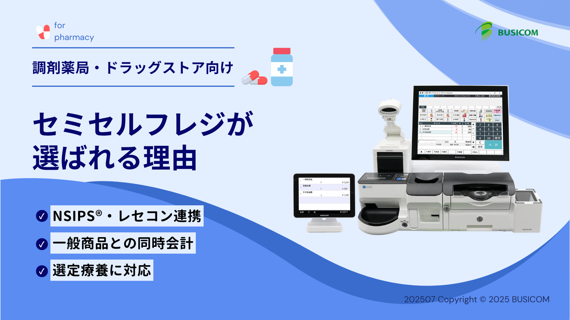 数多くの調剤薬局・ドラッグストアでご導入のお問合せを頂いております、ビジコムの「セミセルフレジ」が選ばれる理由・メリットや、 カタログ資料などを無料でダウンロードいただけます。