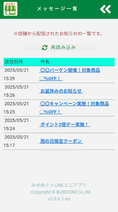 なお、LINEのメッセージ配信機能は、みせめぐMiniの機能ではございませんので、配信数によって、料金が発生する可能性がございます。