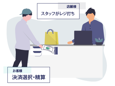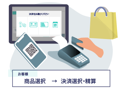 リアレジには、セミ・セルフモードを標準搭載しているので、お客様が券売機のような操作感でお使いいただくこともできます。