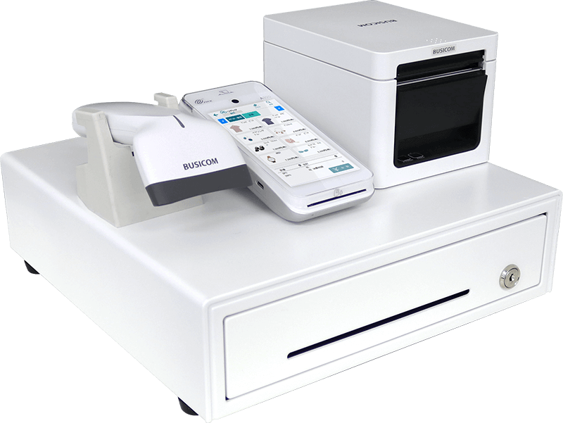 モバイル型オールインワン決済端末。6.5インチの大画面タッチパネルでスマホ感覚で利用可能。持ち運びに便利な片手サイズでプリンター搭載のためレシート印刷にも対応。