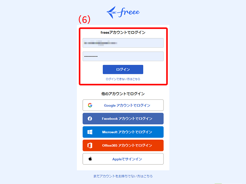 「freee」のログイン画面が別タブで開きます。