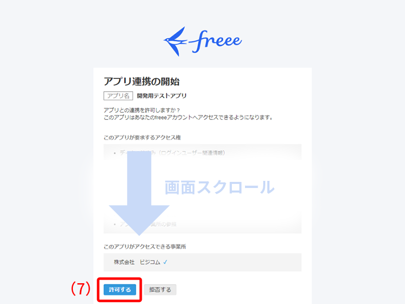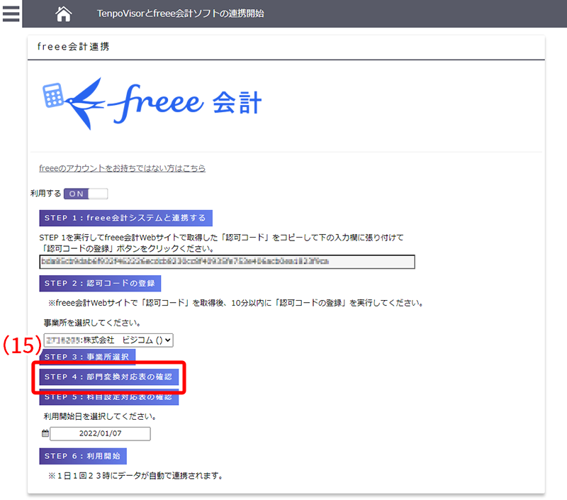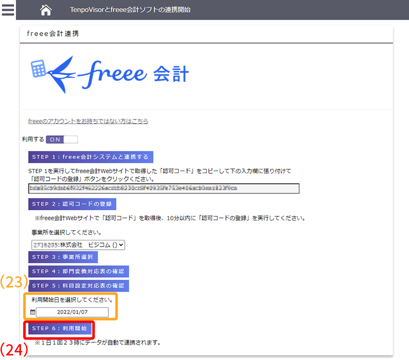 「会計フリー」の連携設定の画面に移ります。