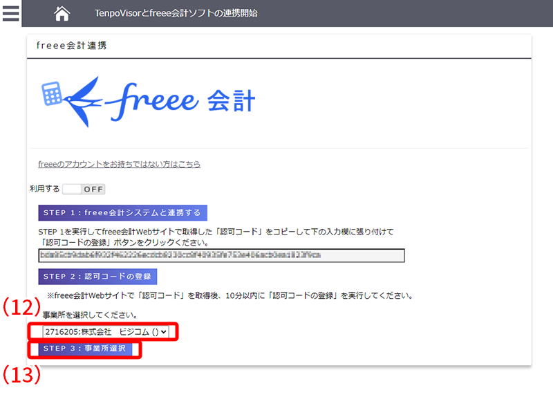※freee会計Webサイトで「認可コード」を取得後、10分以内に「認可コードの登録」を実行してください。