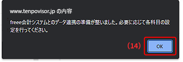 ダイアログが表示され、freee会計とのデータ連携の準備が完了します。「OK」をタップ。
