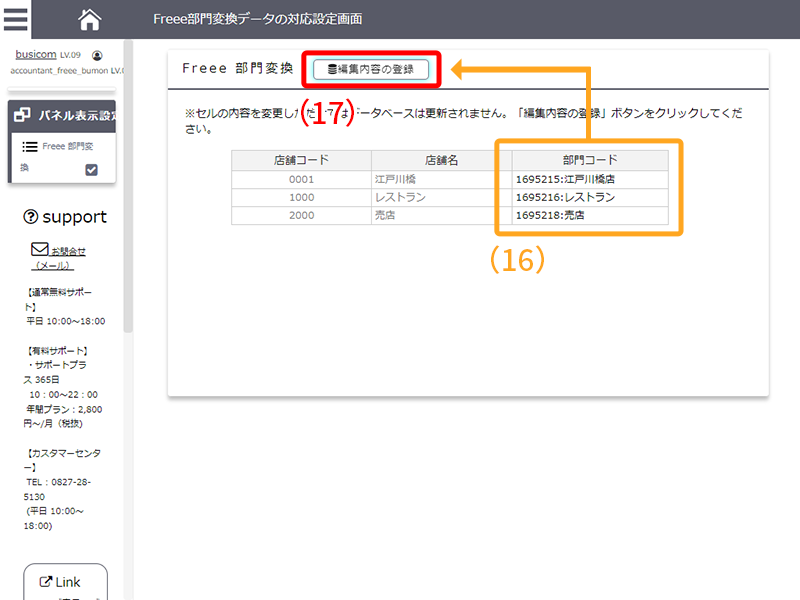 [注意]本設定を行う前にfreee会計で「部門」の整備を実施してから本設定を行って下さい。