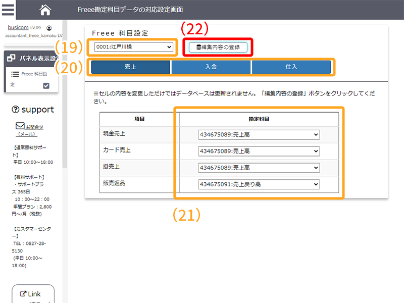 POSレジの日報項目に対して、どの「勘定科目」を仕分けるか紐付けを行う。