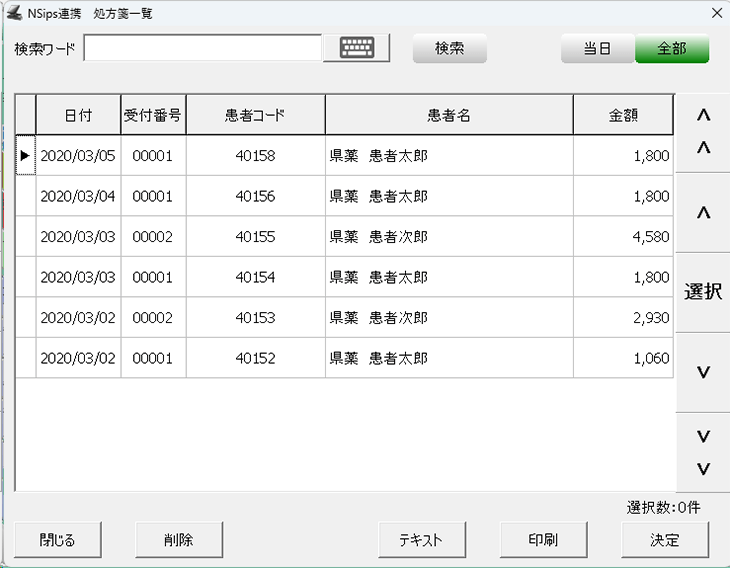 ※患者番号のバーコードの場合に呼び出せるデータは当日の内容のみになります - 当日会計する患者様をリストから選択した際、未収がある患者様の場合には確認メッセージを表示し、過去の未収データを合わせて表示できるようになります。